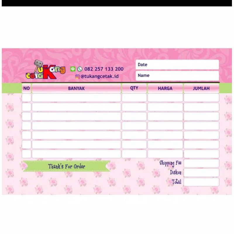 ukuran 14x10 cm bahan kertas HVS isi 100 lembar...bisa pake data olshop sendiri..data di kirim lewat chat ya