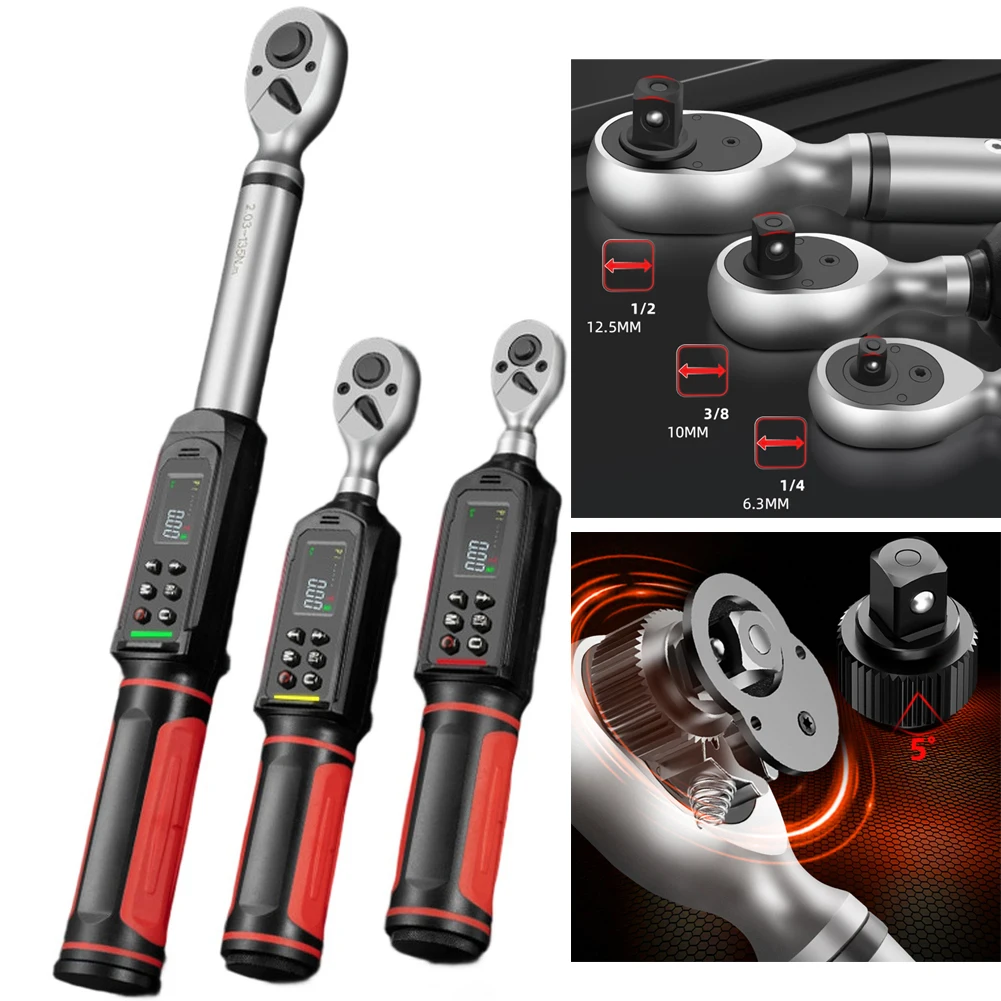 LED notification overload protection Digital torque wrench 14 38 12 inch with quick release socket vibration buzzer