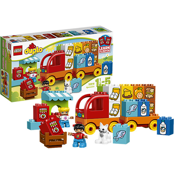 LEGO DUPLO (ЛЕГО Дупло) 10818: Мой первый грузовик - увлекательный игровой набор, который станет замечательным подарком для Вашего малыша. Из ярких деталей он сможет самостоятельно собрать красочный грузовик с прицепом и местом для водителя. Загрузите кузов разнообразными продуктами (в комплект входят 8 пар разноцветных блоков, декорированных изображениями продуктов) и отправляйтесь в путь. Можно соорудить рыночный киоск с навесом и открыть торговлю. Все детали разработаны специально для маленьких детских ручек. Набор предоставляет большие возможности для веселых ролевых игр и развития фантазии.