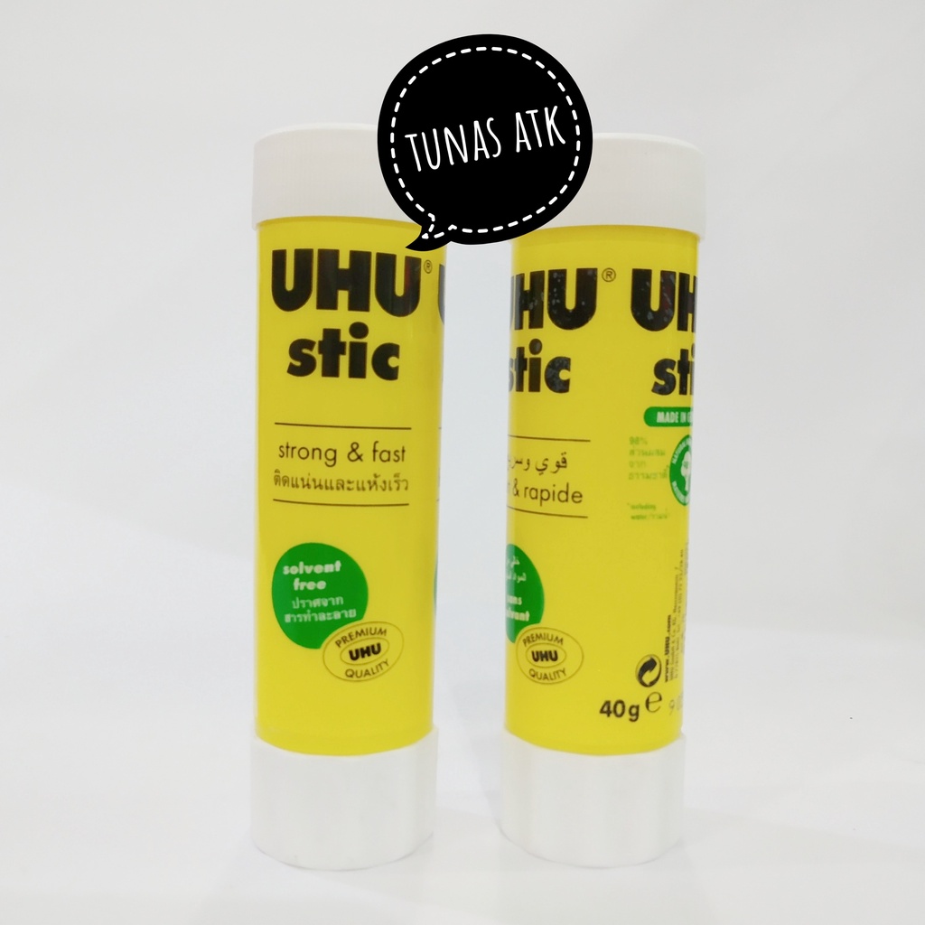 UHU Stic adalah perekat berbentuk batangan seperti lipstik yang bebas dari bahan berbahaya. Tutupnya menggunakan mekanisme ulir yg mencegah perekat cepat kering. Cukup basuh dengan air bersih jika perekat terkena tangan karena perekat terbuat dari formula baru yang berbahan alami.