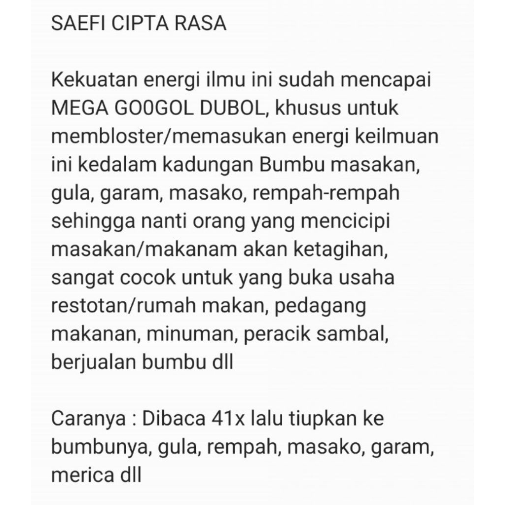 ini dibccakan pada bumbu makanan khusus yang punya warung warung makanan, agar org yang membeli dan merasakan masakan kita mnjadi ktagihan dan sll pngen makn lagi ditempat kita. shingga warung menjadi ramai