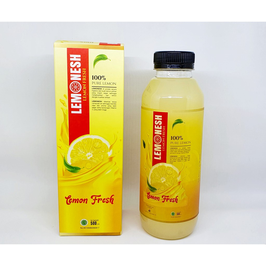 LEMONESH merupakan 100% perasan LEMON tanpa CAMPURAN apapun. LEMONESH diproses secara higenis dari buah lemon pilihan yang masih segar sehingga menghasilkan sari lemon dengan kualitas terbaik. LEMONESH dikemas tanpa campuran air sehingga memiliki rasa dan aroma yang lebih segar serta kandungan Vitamin C yang lebih tinggi.