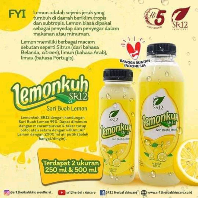 Kini Hadir Lemonkuh SR12 minuman sari buah lemon murni yang mengandung 99,96% sari buah lemon.