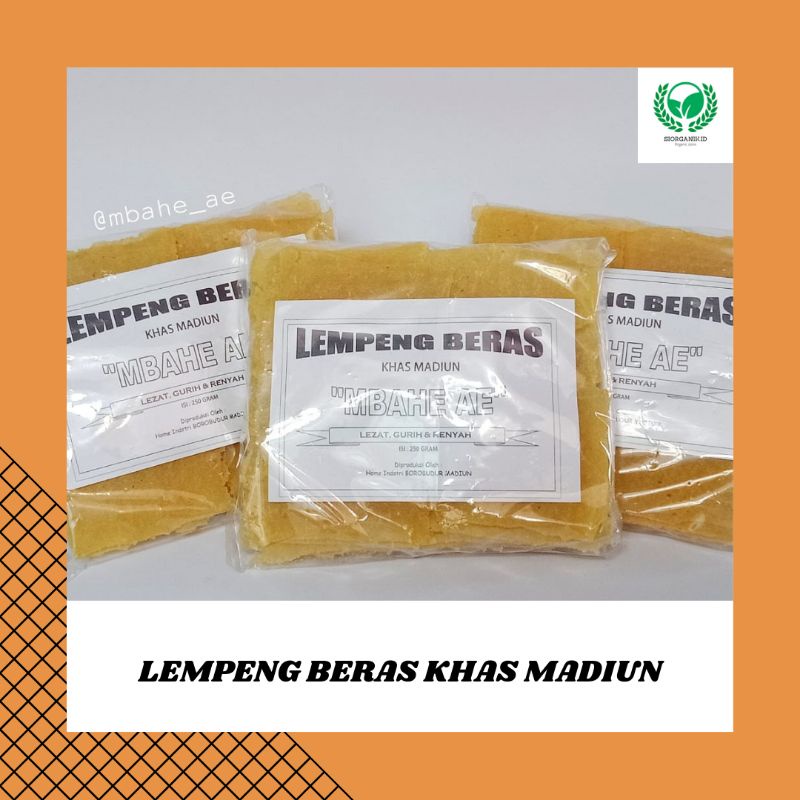Lempeng Beras "MBAHE AE" adalah jajanan/makanan khas kota madiun dengan bahan dasar beras organik dengan varian beras putih dan beras merah memiliki cita rasa yang unik, renyah, dan gurih cocok untuk cemilan ataupun teman makan. dipacking dengan bubble wrap agar produk tetap aman.