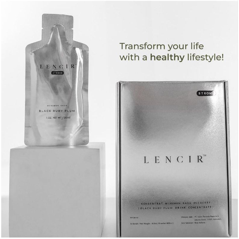 Minuman prebiotics kesehatan dengan efek lebih kuat dari varian Original yang menggunakan enzim buah dan sayuran sebagai kandungan utamanya. Lencir adalah detox drink yang berfungsi untuk menghilangkan racun dalam tubuh dengan memberikan bakteri usus yang dapat mempercepat sistem pencernaan & meningkatkan fungsi metabolisme. Tidak hanya membantu mengurangi berat badan tapi bisa mencerahkan kulit dan meregenerasi sel2 kulit kita karna kaya akan vitamin B2, selain itu vitamin b2 juga sangat tinggi antioksidan..