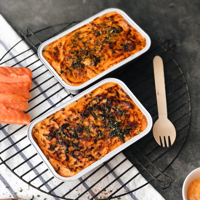 Nori Rice, Fresh Salmon, Tobiko, & Sauce Mentai by Lenncooks.