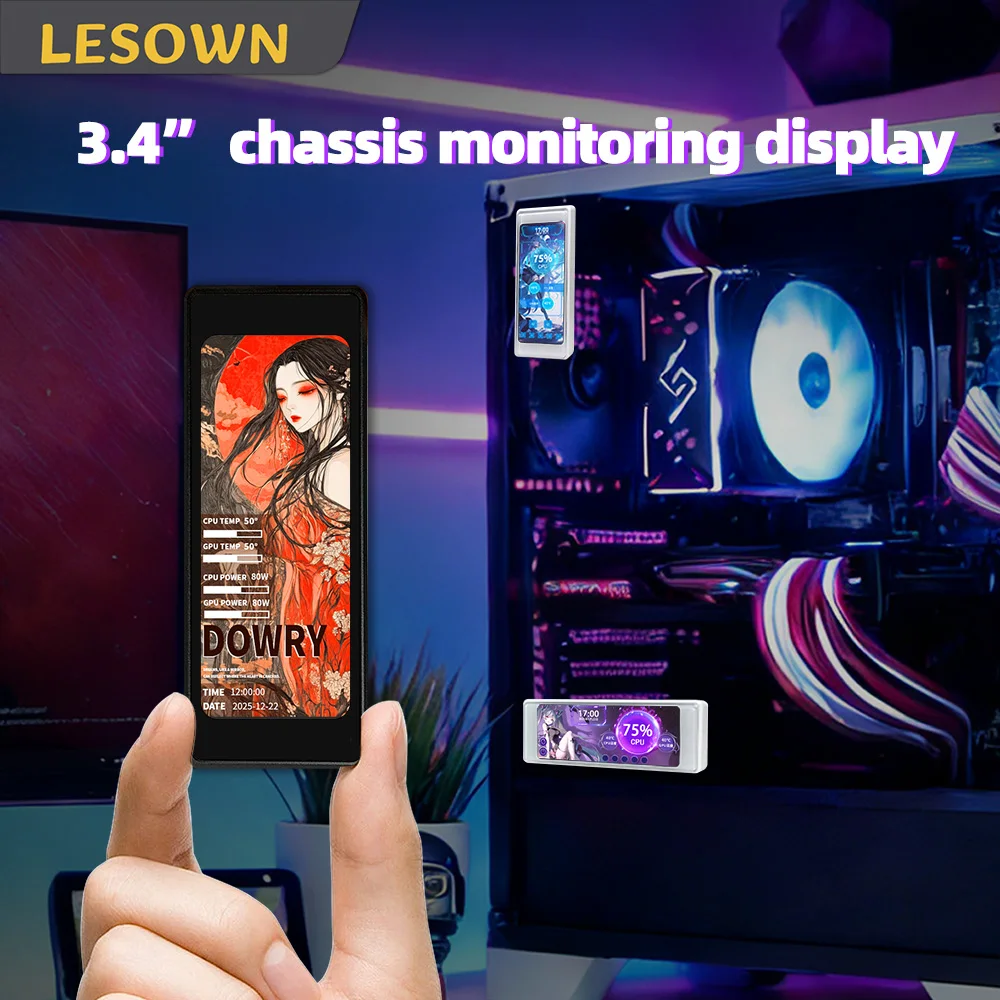 LESOWN Mini 3.4in Horizontal Display 376x960 IPS USB Mini Screen Stretched Bar Monitor PC CPU Data Monitor Sensor Panel Monitor