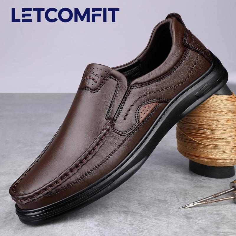 LETCOMFIT Мужская деловая обувь из натуральной кожи, повседневная, комфортная, низкий верх, роскошные лоферы, слипоны, коровья кожа, резиновая подошва, модельная обувь 44 коричневый