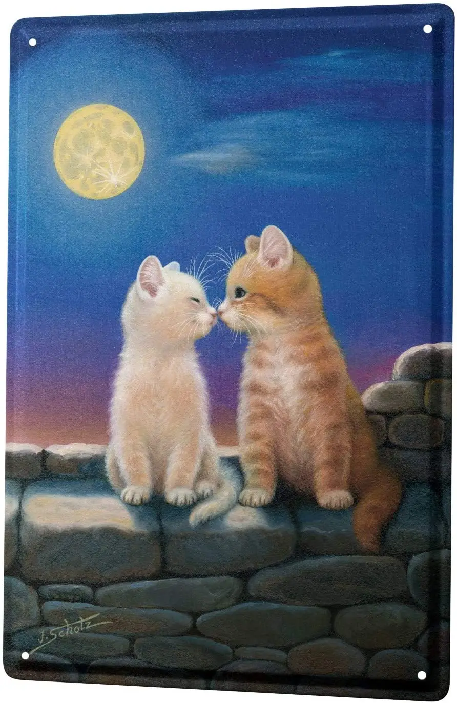 LEotiE с 2004 года Оловянная металлическая пластина Декоративный Знак Домашний декор таблички 30x40 см кошка стена полная луна