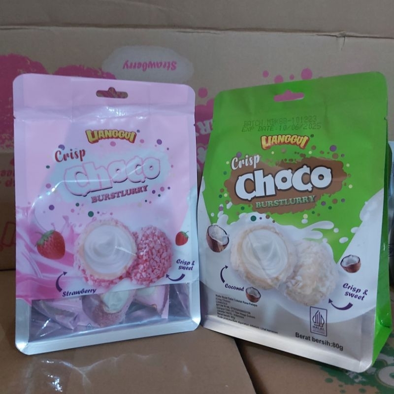 LIANGGUI CRISP CHOCO BURSTLURRY | WAFER BULAT RASA COKLAT STROBERI DAN KELAPA