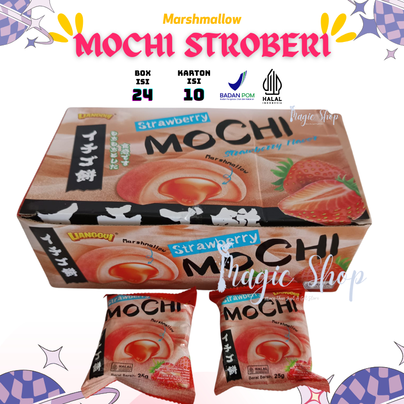 LIANGGUI MOCHI DAIFUKU RASA STRAWBERRY ISI 24 PCS / MOCHI MARSHMALLOW STROBERI