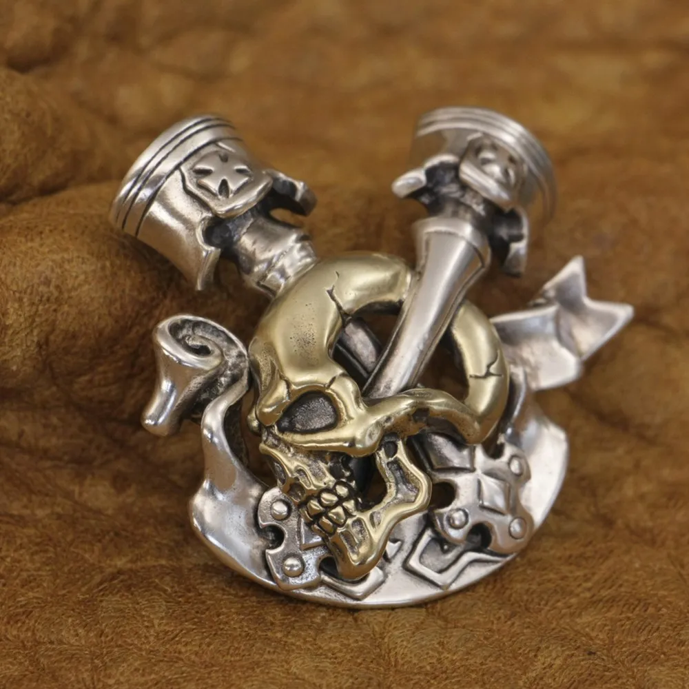 LINSION, подвеска в виде черепа с двигателем, искусственная Серебряная Мужская подвеска в стиле панк, TA322 JP