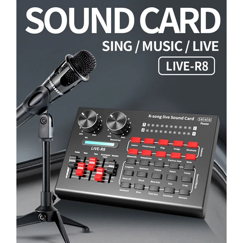 LIVE-R8 Bluetooth Звуковая карта, аудиоинтерфейс, USB гарнитура, живой микрофон, веб-трансляция, звуковая карта для телефона, компьютера, ПК, петь