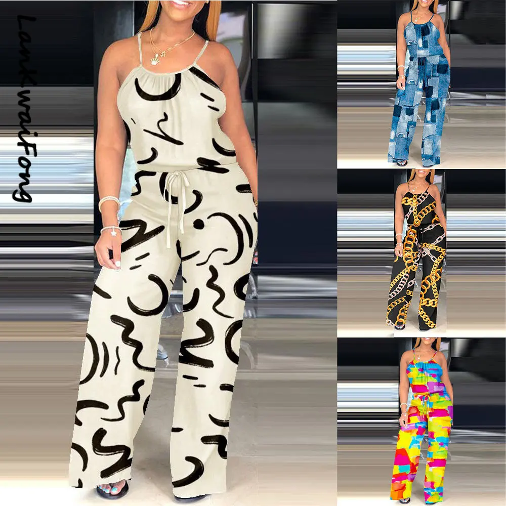 LKF 2023 Новый Модный комбинезон с принтом на бретельках без бретелек сексуальные летние повседневные широкие брюки