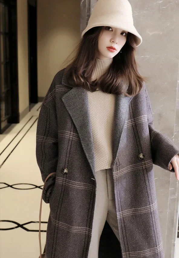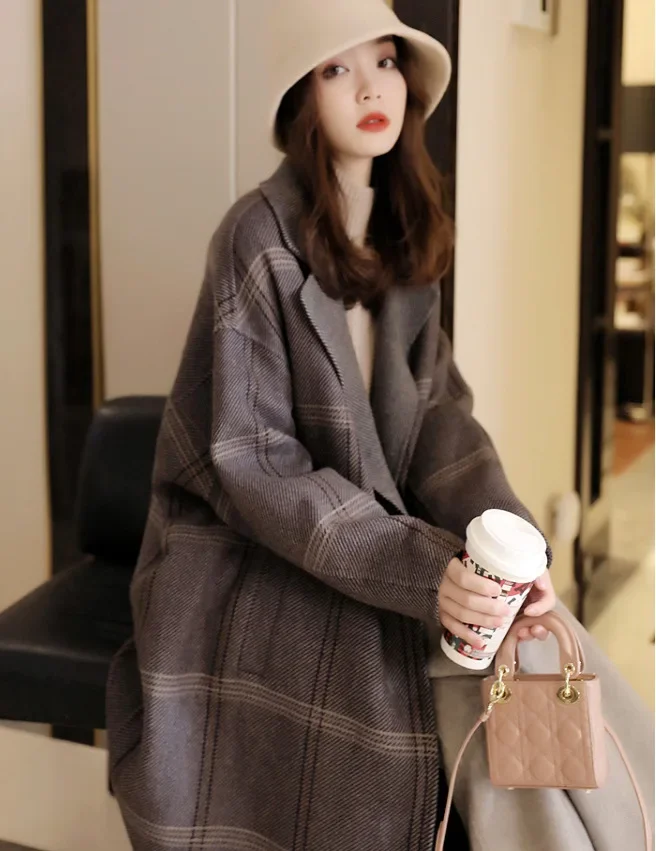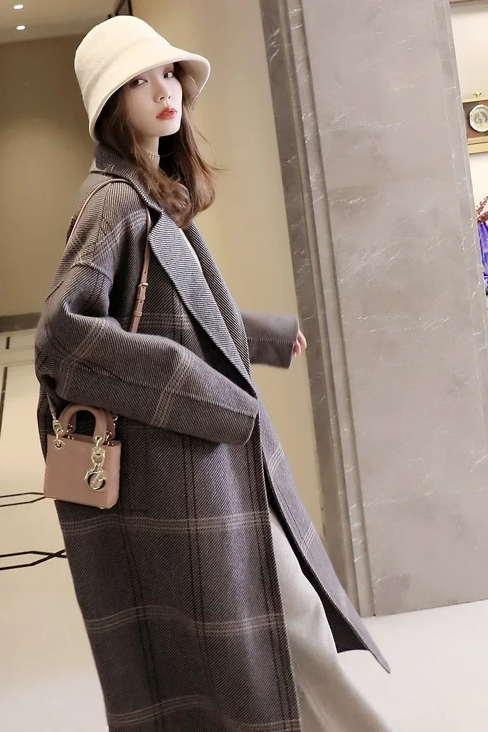 LMPB 2020 зимние однотонные повседневные однобортные кашемировые женские длинные пальто