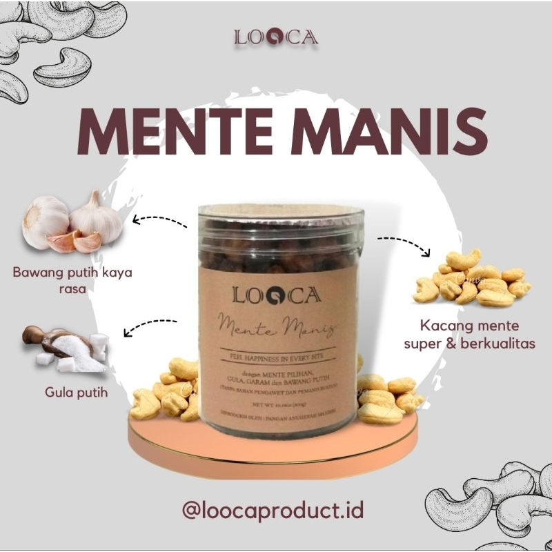 Menggunakan biji kacang mente super pilihan, menjadikan LOOCA Mente Bumbu memiliki cita rasa yang khas.