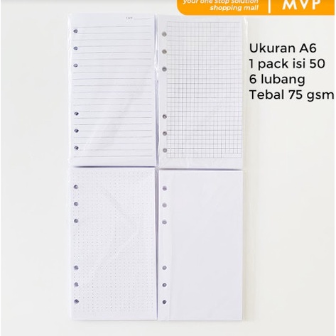 KERTAS BINDER A6 LOOSE LEAF KERTAS FILE NOTE ISI BINDER A6 6 RIng 50 LEMBAR Loose Leaf Grid Loose Leaf Kotak Loose Leaf Polos Loose Leaf Dot Loose Leaf Titik Loose Leaf Garis