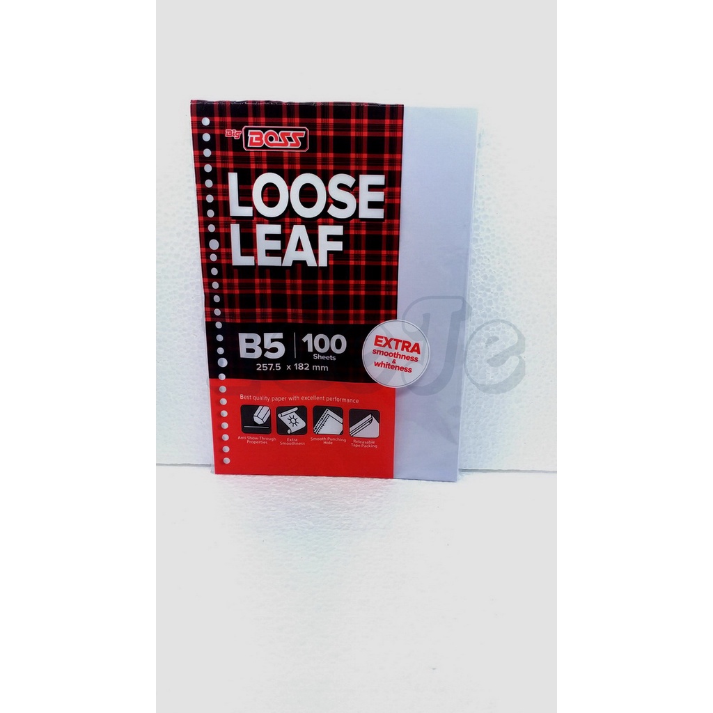 Loose leaf atau isi binder dengan variasi kertas putih polos dengan ukuran B5.