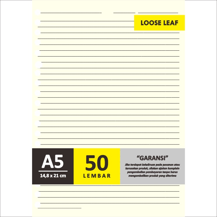 LOOSE LEAF Kertas File Isi Binder A5 20 Lubang