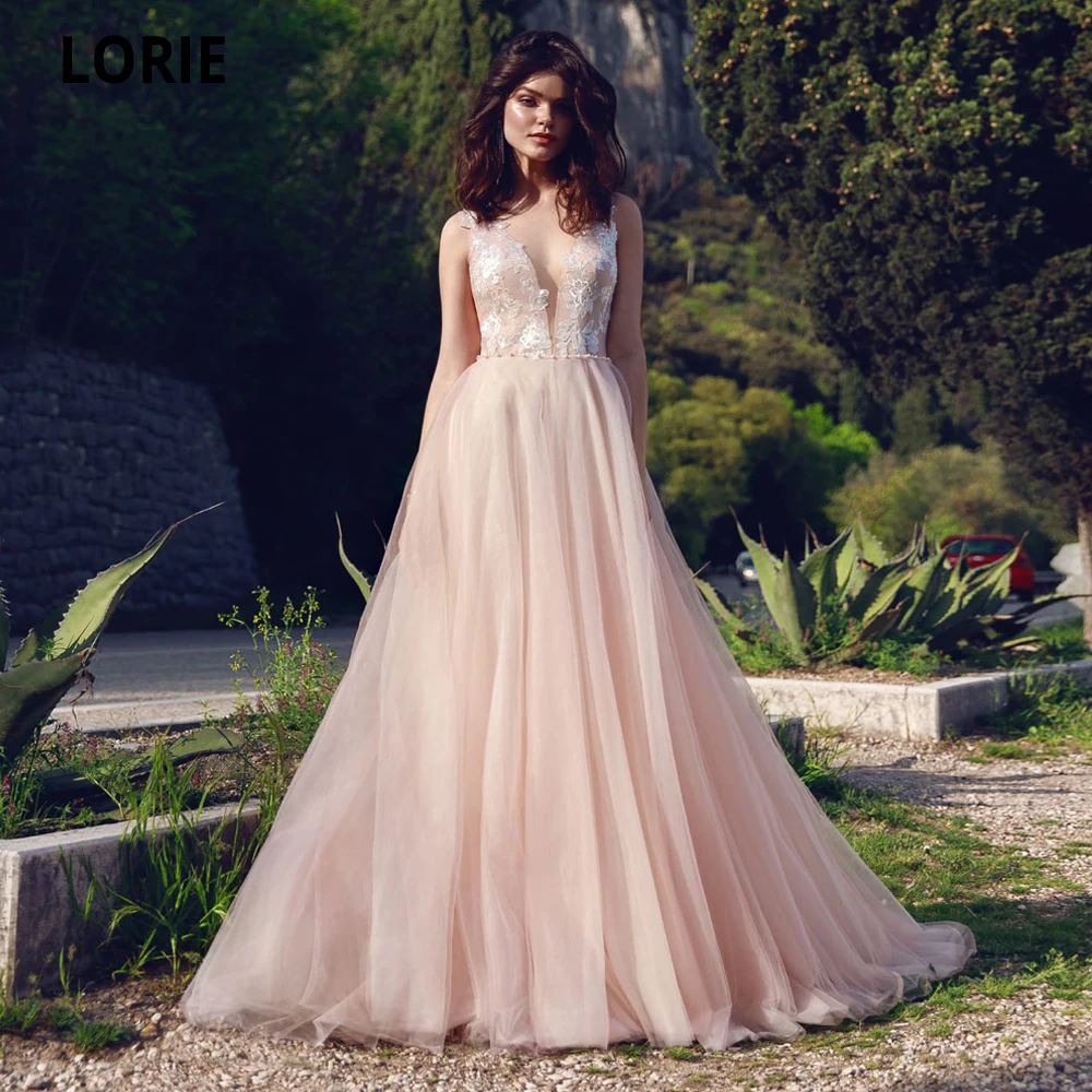 LORIE Румяна пляжные свадебные платья V-образный вырез свадебное бохо-платье винтажные кружевные аппликации с бисером Свадебные платья без сп...