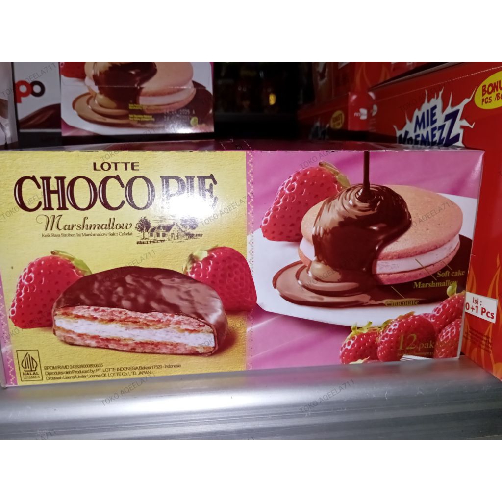 LOTTE CHOCOPIE RASA COKLAT DAN STROBERI isi 12 pcs 280g