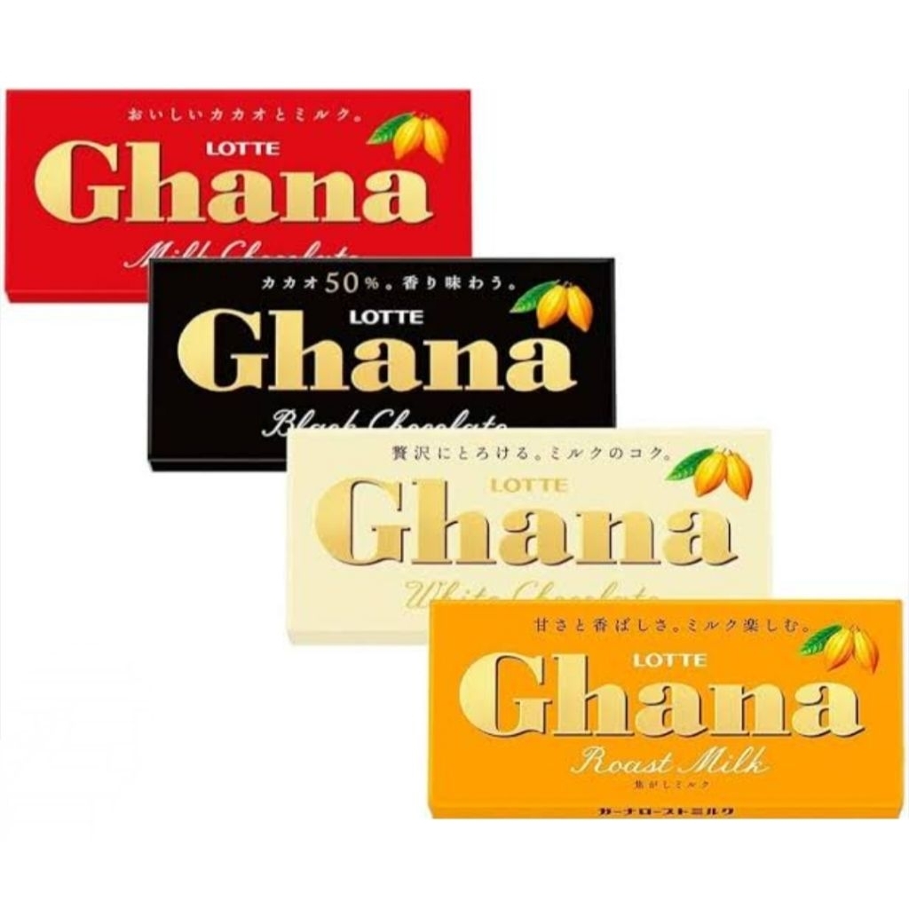 Lotte Ghana Black Chocolate adalah cokelat hitam batangan yang diproduksi oleh Lotte Confectionery. Cokelat ini memiliki rasa yang kaya dan lezat, dengan sedikit rasa pahit dari kakao. Cocok untuk dikonsumsi langsung atau digunakan dalam pembuatan makanan dan minuman.
