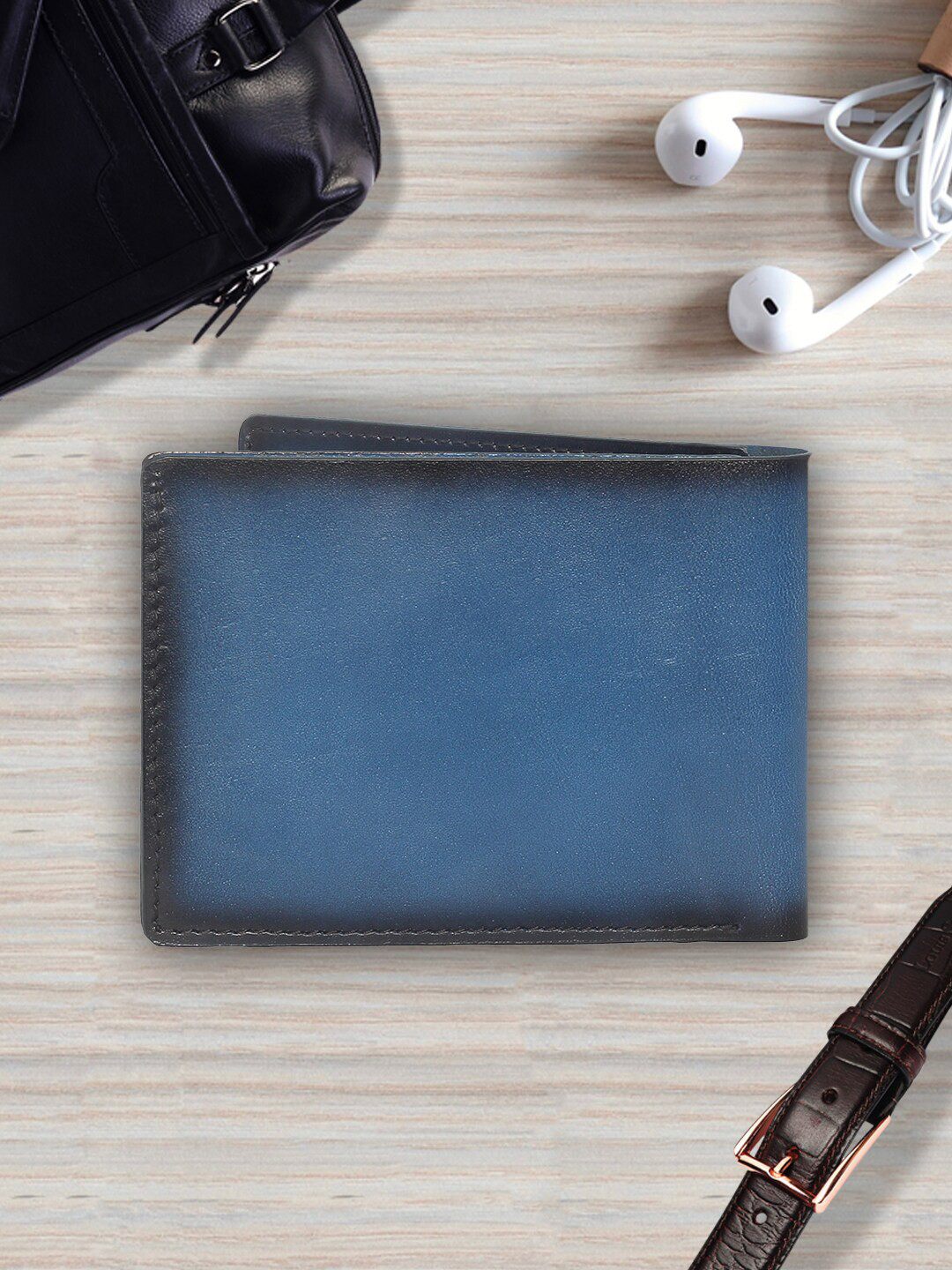 LOUIS STITCH Men Textured Leather Two Fold Wallet, Blue