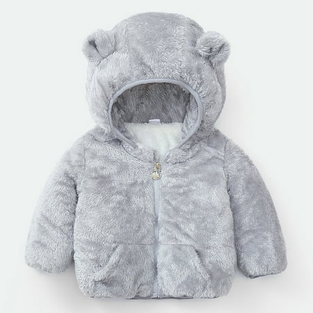 Leutsin Toddler Kids Baby Gril Boy Cute Ear Zipper Solid Thick Hooded Coat Warm Outwear