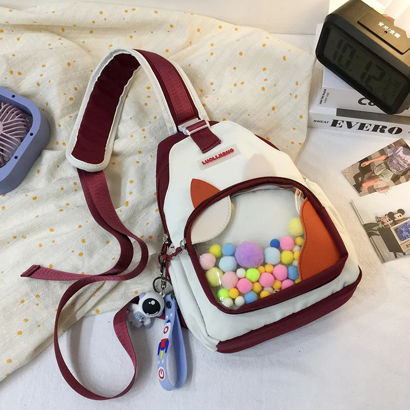 Women Cute Messenger Bag Young Girls Ins Transparent Contrast Color Shoulder Bag Small Chest Bag Harajuku Travel Handbag New