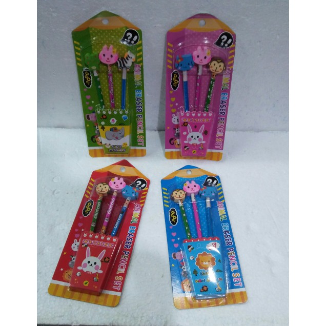 1 paket isi 3 pcs pensil dan 3 pcs penghapus
