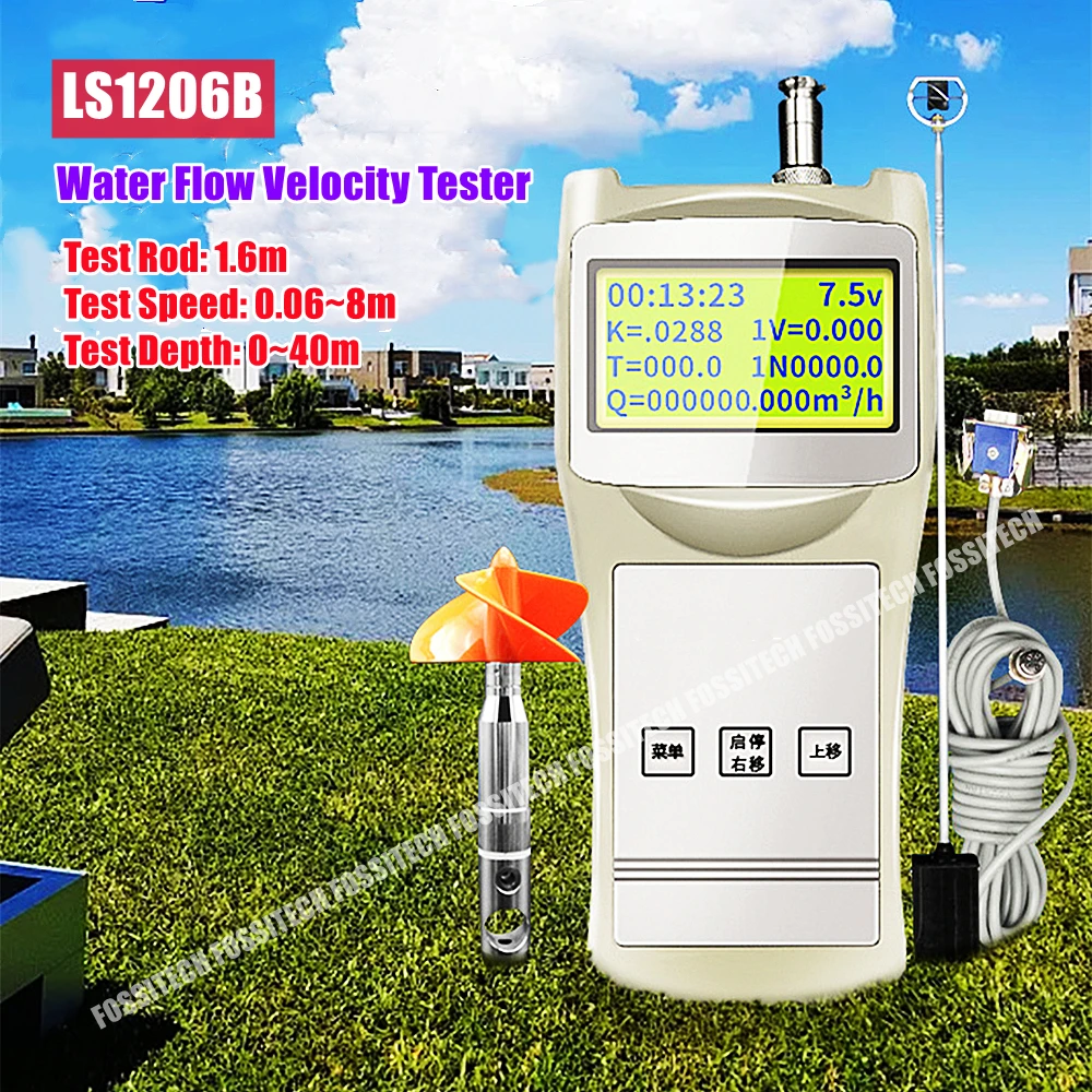 LS1206B измеритель скорости Жидкости Тестер скорости потока воды 0,05 ~ 8 м/с портативный измеритель расхода 1,6 м водонепроницаемый тестовый стержень
