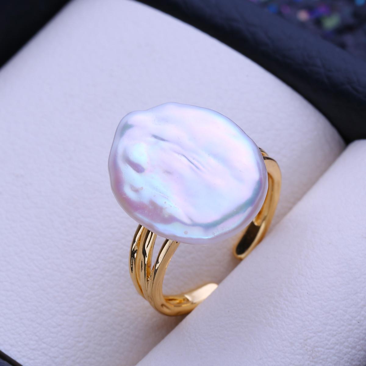 LSOOYH натуральный пресноводный большой барочный жемчуг кольца для женщин золотого цвета простое офисное кольцо подарки на день рождения adjustable золотой