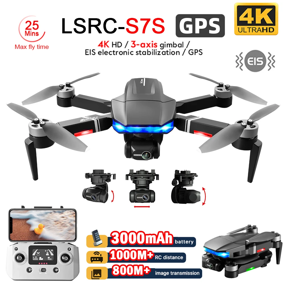 LSRC-S7S Sentinel мини GPS Дрон с 4K камерой EIS 3-осевой карданный подвес 5G Wifi FPV Бесщеточный складной Квадрокоптер радиоуправляемые игрушки