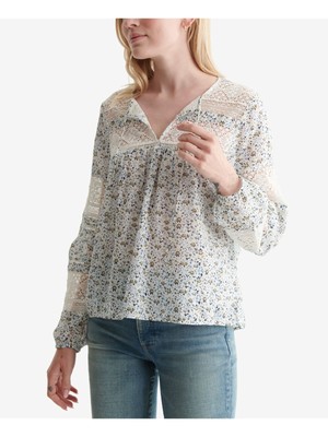 LUCKY BRAND Женская богемная блузка с белым галстуком и вставками, топ с разрезом и длинными рукавами, Белый