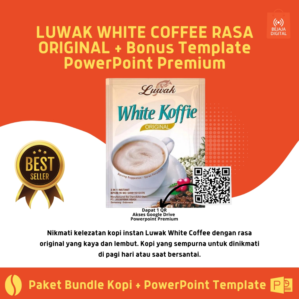 Jangan lewatkan! Dapatkan cita rasa lezat Luwak White Coffee Original dan Bonus Template PowerPoint Premium hanya dalam satu paket lengkap dengan akses praktis via kode QR!
