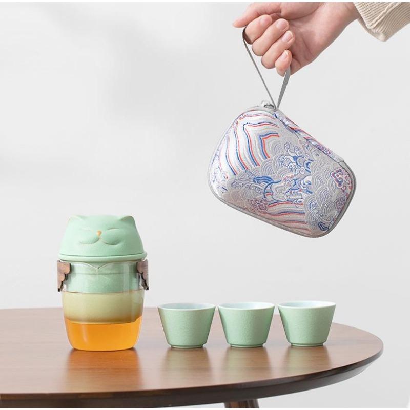 LUWU термостойкий стеклянный и керамический чайник с портативным чайным набором Cute Cat на 3 чашки Style C