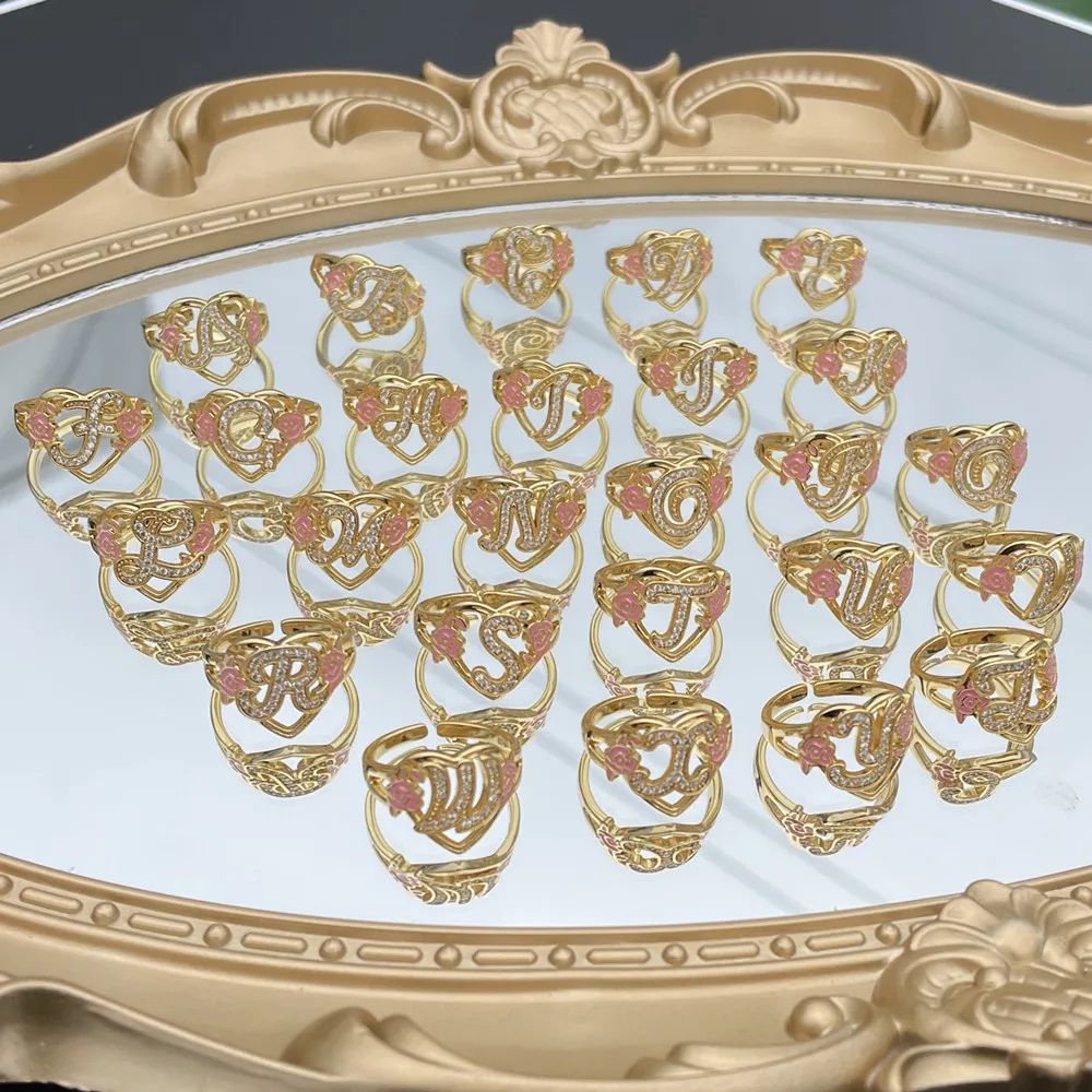 LW кольцо с золотыми инициалами в форме сердца, эмалированное кольцо с буквами на заказ, Женское кольцо с индивидуальным дизайном, 26 букв в стиле хип-хоп, модные украшения, подарки