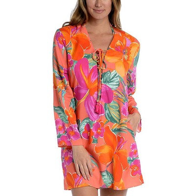 La Blanca Женская оранжевая туника на шнуровке Isla с принтом BHFO 7305, Hot coral