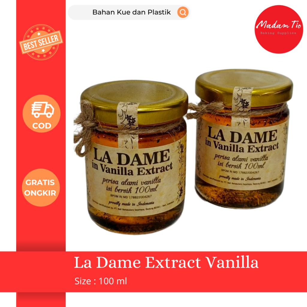 La Dame Extract Vanilla 100ml adalah pilihan ideal untuk menambah aroma dan rasa vanila yang autentik pada setiap hidangan, menjadikannya lebih spesial dan lezat.