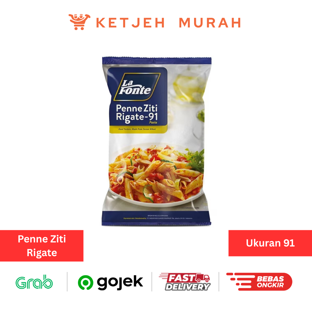 La Fonte Penne Ziti Rigate-91 adalah pasta berbentuk bumbu runcing dengan tekstur bergaris yang terbuat dari gandum durum pilihan, Memiliki tekstur kenyal dan lembut. Mengandung zat besi dan kalsum. Cocok diolah menjadi masakan khas Italia.