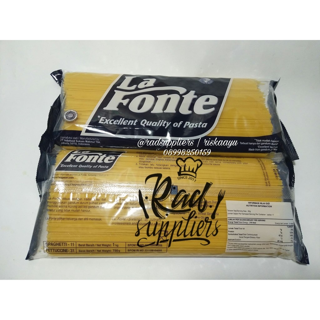 La Fonte Spaghetti kemasan 1kg IDR 26.000 per kemasan Berat Bersih 1kg...