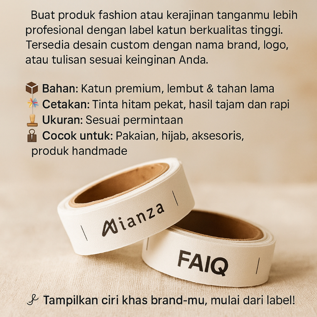 Label ini cocok untuk penjual yang sedang memulai usaha konveksi, label ini bisa untuk pakaian, baju, celana, jilbab/kerudung, tas, souvenir. dll