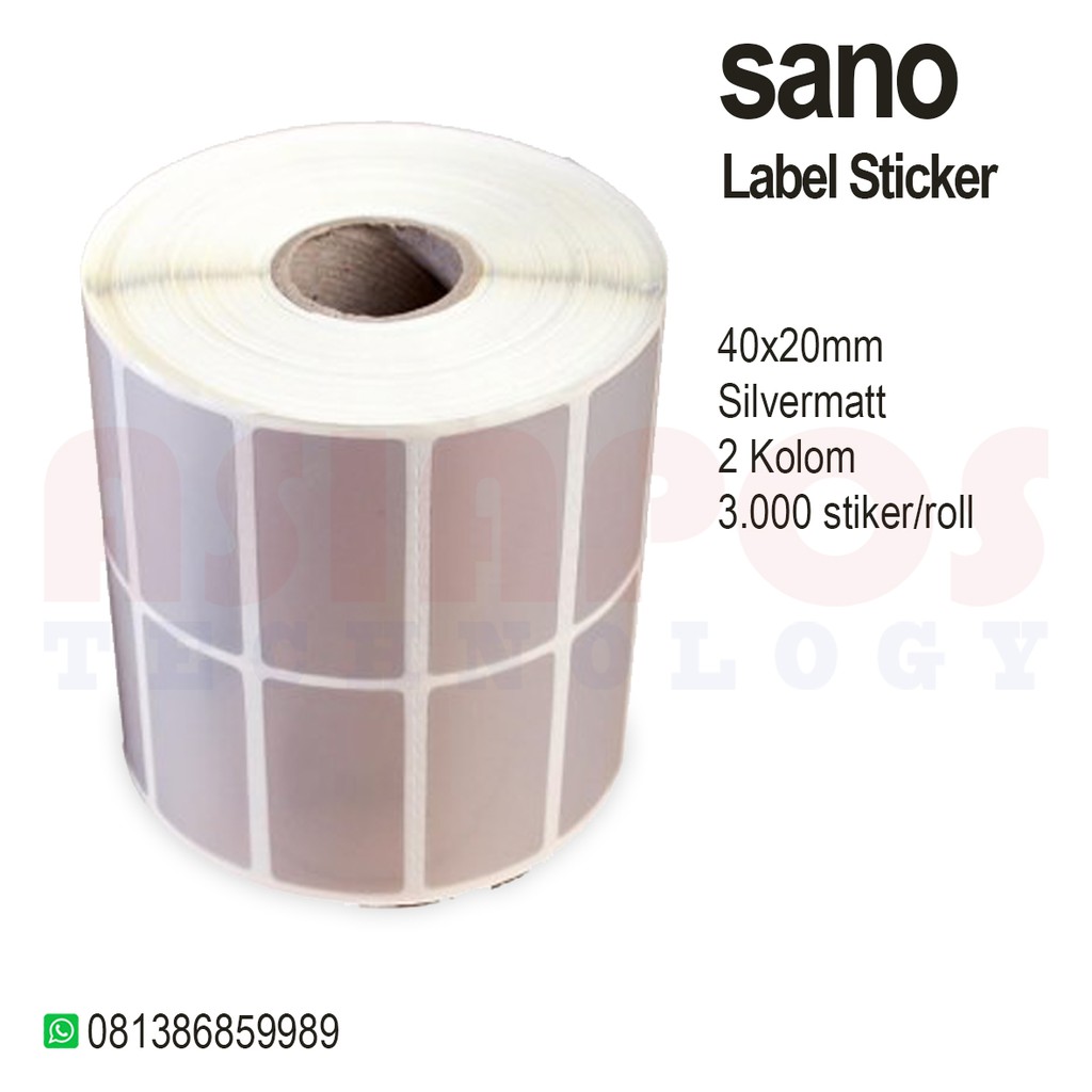 Label Sticker Silvermatt Sano 40mm X 20mm dengan jarak vertical antar label sebesar 2mm, 2 baris sticker dan juga berisi 3000 label per rollnya.