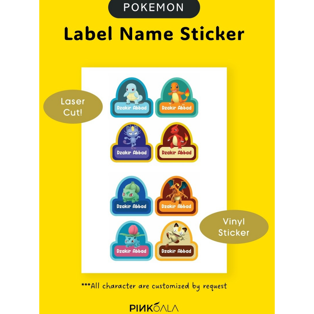Label Nama Sticker Vinyl POKEMON - Lasercut
