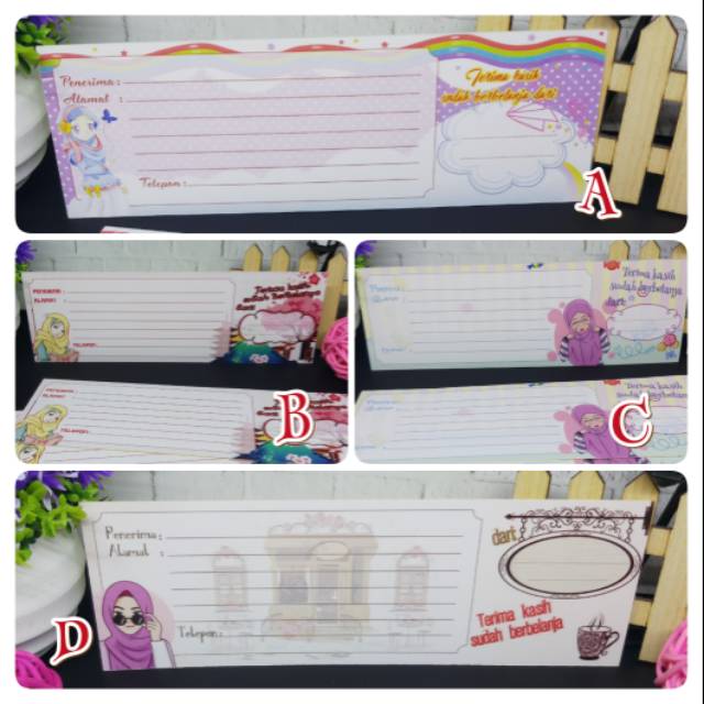 Label pengiriman paket non custom dengan design Hijab Series. Cocok bagi Anda yang berbinis baju muslim atau Anda yang ingin memanjakan para reseller dengan tampilan yg kece.