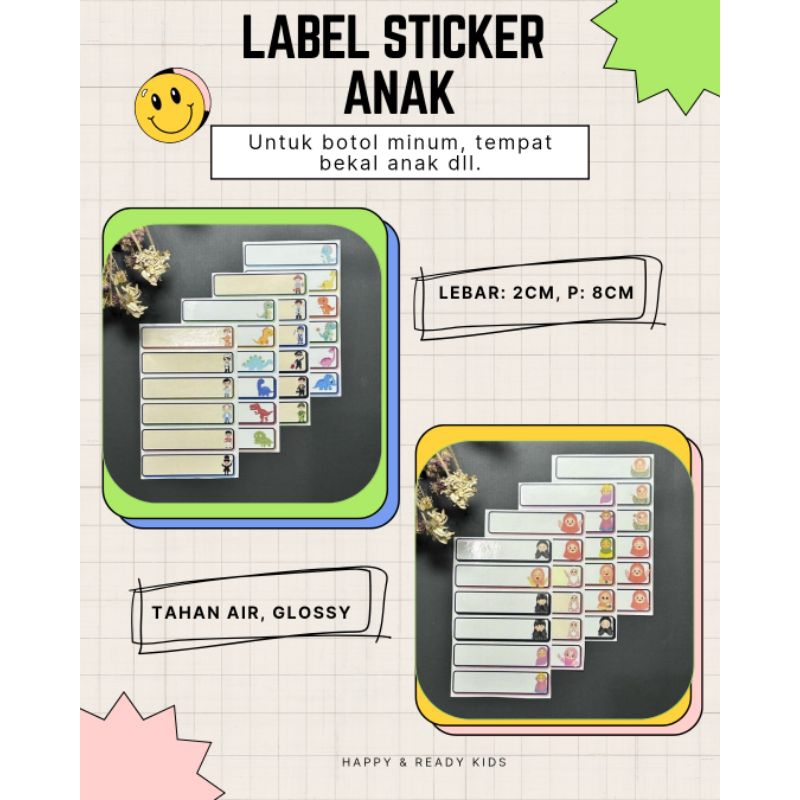 Sticker Label Anak dapat digunakan di botol minum, tempat bekal anak dll.