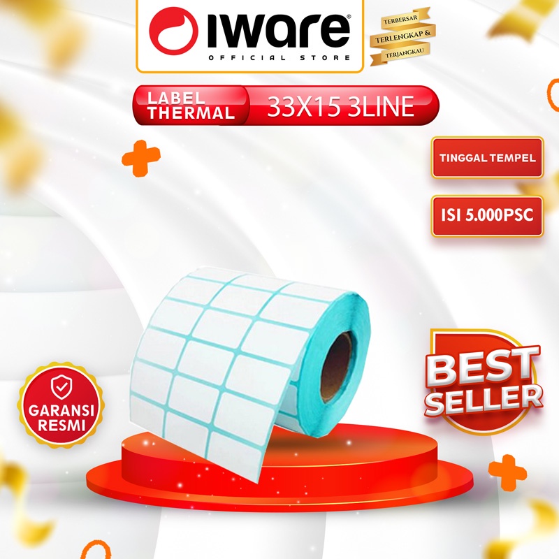 Label Sticker Barcode Thermal 33X15MM 3 LINE CORE 1" Tinggal Tempel