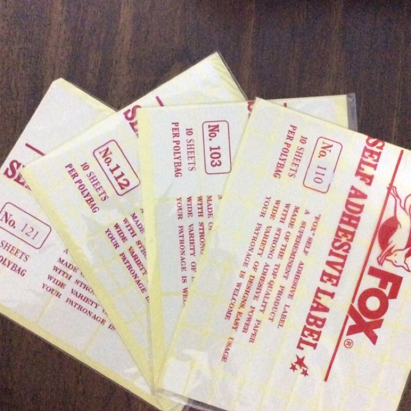 Label Sticker Fox 121, 112, 103, 110