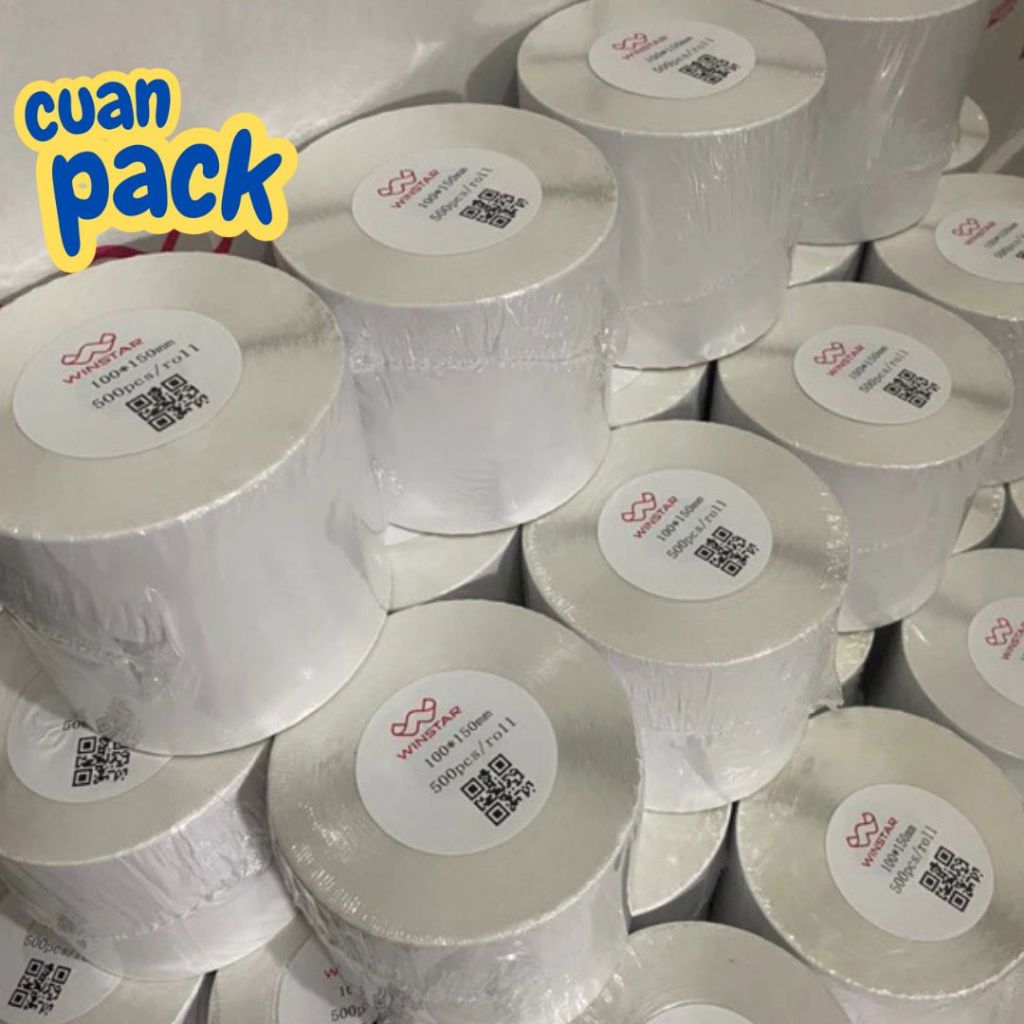 Kertas Thermal 100 x 150 mm dengan isi 500 lembar, bentuk roll dengan sticker jadi tinggal tempel.