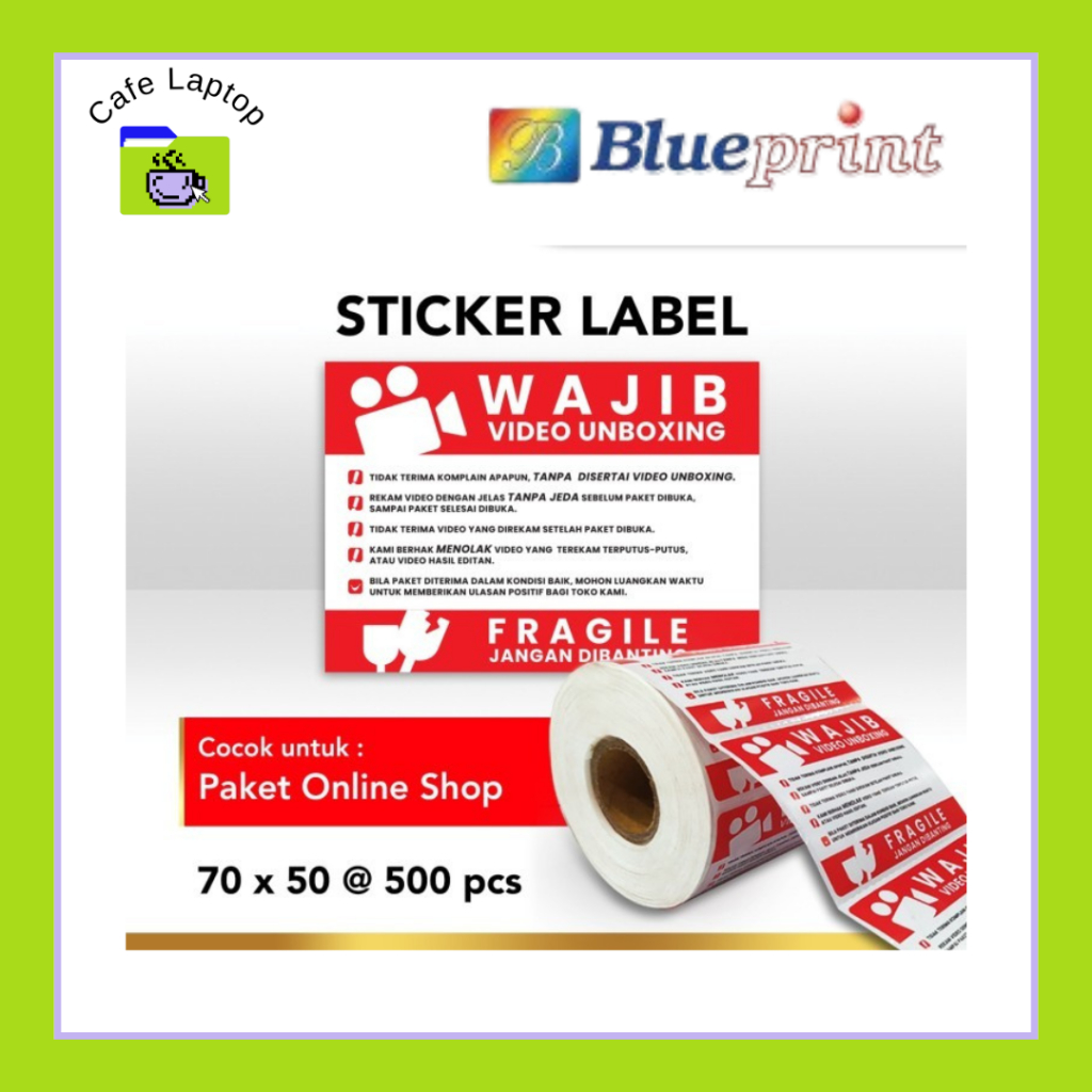 Label Sticker Unboxing Fragile BLUEPRINT 70x50 mm isi 500 1 ROLL
